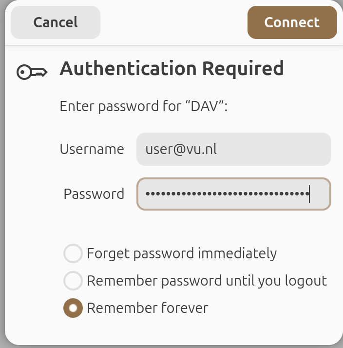 https://data.yoda.vu.nl /mnt davfs user,auto,uid=1000,gid=1000 0 0- And adjust the parameters as needed: